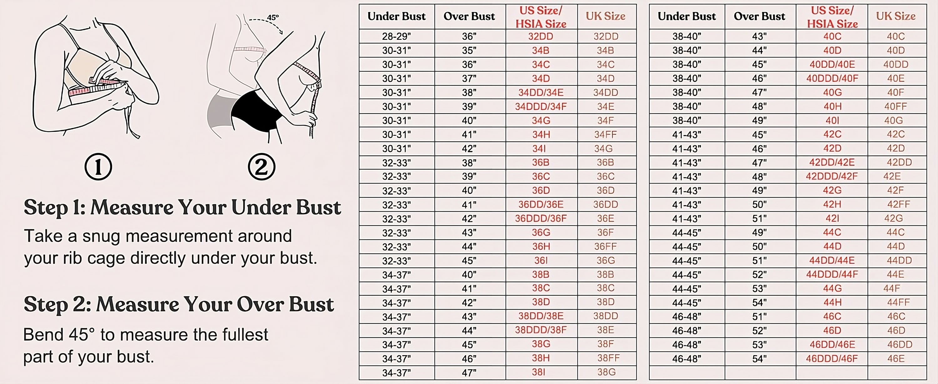 Answer 2: It’s important to measure your bust and band size accurately. Check the sizing chart of the brand, as sizes may vary between manufacturers.